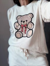 Sweater en hilo con spandex, tajos laterales cuello v, estampado en el frente con vinilo termoadhesivo en diseño print
