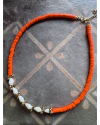 Collar a la base del cuello con escalla a coco y mostacillas bronce , buzios entorchados en alambre triple A